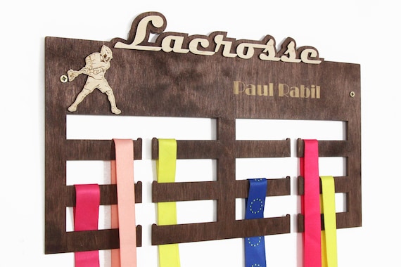 This laser cut medal holder will let organize your LACROSSE medals in one place. It is made from plywood, covered with brown stain. LACROSSE label stands out a bit from other frame (3mm / 0.12" rising) and emphasize a sport discipline. Champion's name is custom engraved - please do not forget to let me know the name I have to engrave. In case you won't provide the name I will leave this place empty.